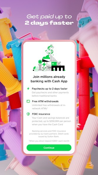 Deposit paychecks, tax returns, unemployment benefits, government stimulus payouts and more directly into your Cash App balance using your account and routing number. Receive deposits up to two days earlier than is standard with most banks. Use the same account and routing information to pay bills using your balance. Cash App is a financial services platform, not a bank. Banking services provided by Cash App’s bank partner(s).