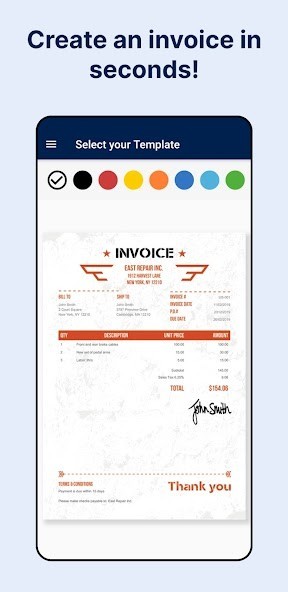 • Each invoice template comes in a variety of colors to match your brand