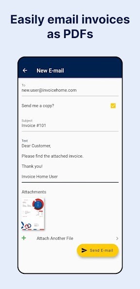 • Send PDF invoices directly to customers via email